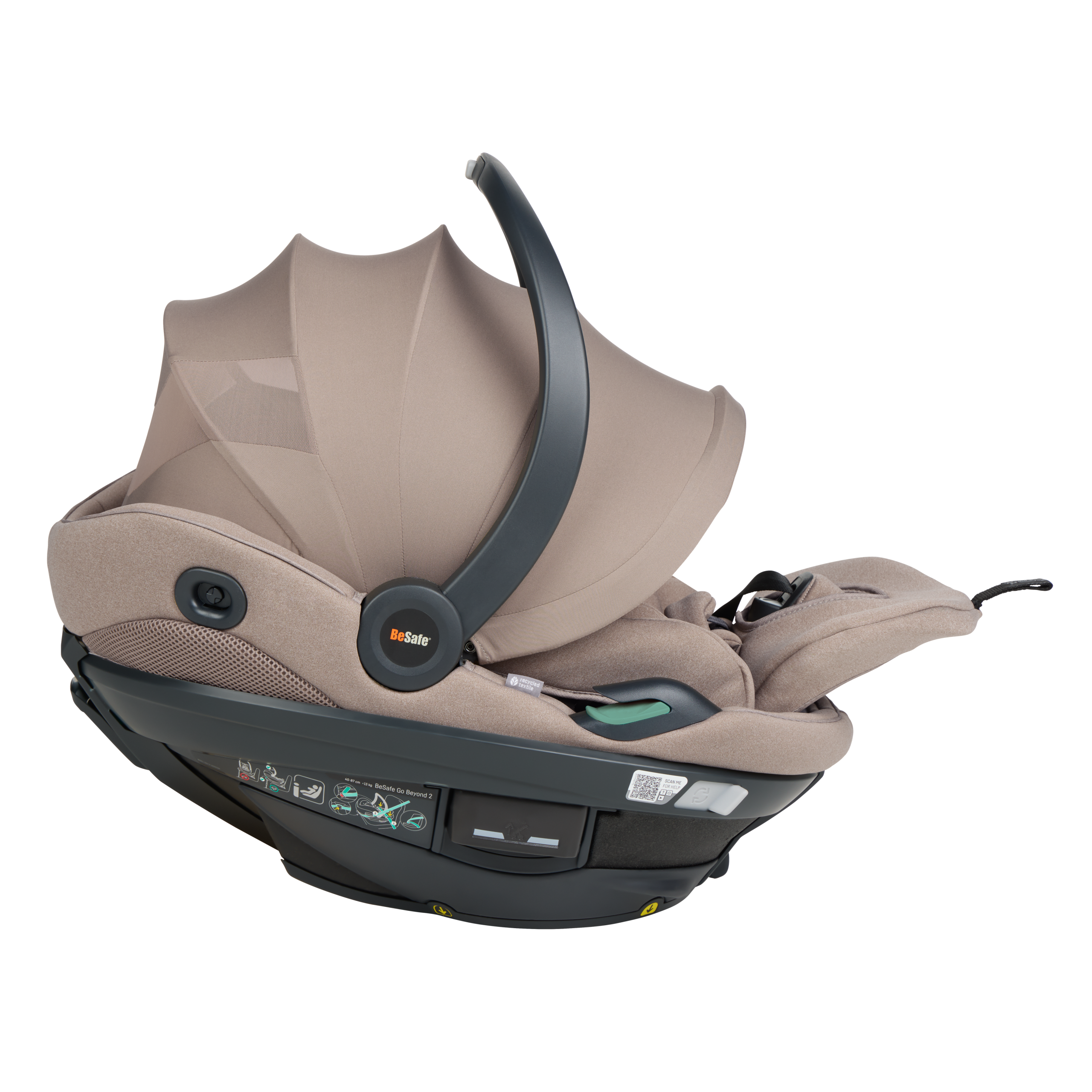 BeSafe Go Beyond² is the latest infant seat designed for safety, flexibility and comfort. Experience a unique safe sleep function that allows your baby to lie flat during car rides. With easy installation options – ISOfix or car belt – and innovative features like hands-free operations and a peekaboo sun canopy. The 5-point harness adds extra safety for real-life situations, complemented by the convenient rotation functionality for easy access to your baby. Certified for usage in airplane. This is an upgrade of the BeSafe Go Beyond , awarded with “Very Good” safety score in the ADAC autumn 2024 test. BeSafe GoBeyond + base is the only true lay-flat seat on the market with the highest possible safety score. Our unique Universal Level Technology™ ensures the same top-level safety performance across all vehicle types.